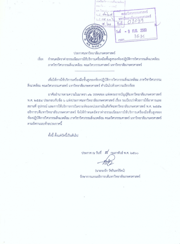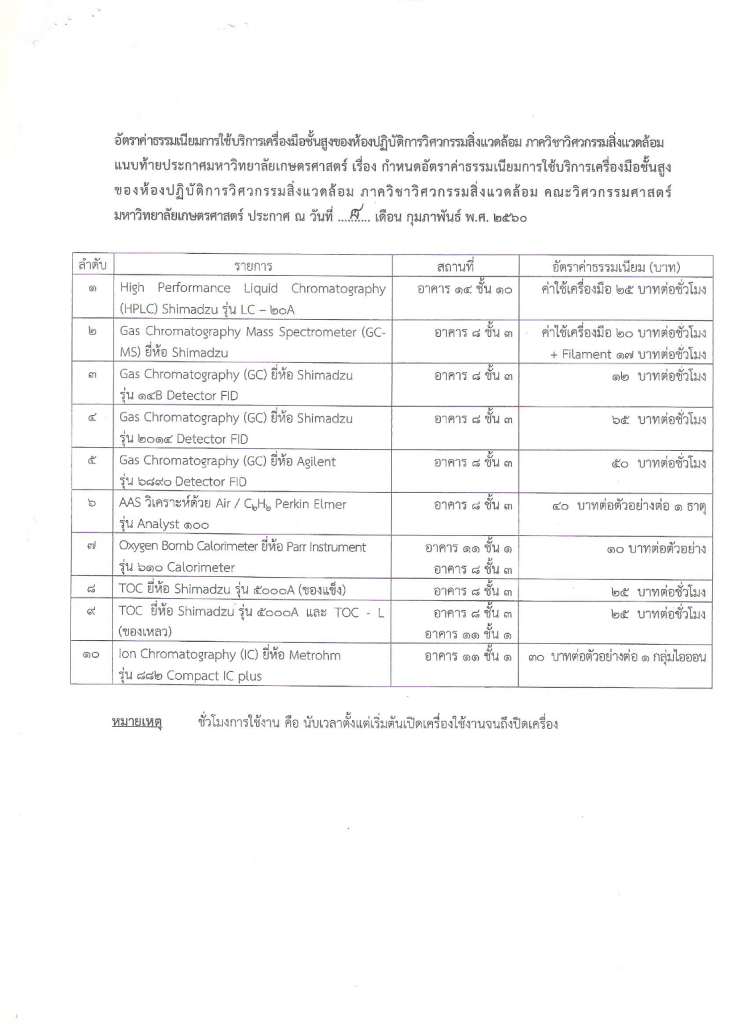 กำหนดอัตราค่าธรรมเนียมการใช้บริการเครื่องมือขั้นสูงของห้องปฏิบัติการวิศวกรรมสิ่งแวดล้อม